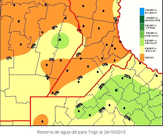 Concuerdan los técnicos en que el rinde del cultivo de trigo está definido. Gran parte de los lotes de trigo están en estado avanzado de llenado de granos y unas lluvias en este momento ayudarían a que no caiga el peso de los granos. Hay trips, pulgones y chinches de los cuernos, algo se septoria también, pero son pocos los controles que se realizan ante las bajas expectativas de rindes. Hay zonas muy deshidratadas y decoloradas, con espigas muy cortas y granos chuzos. Estos sectores del sur de Santa Fé y oeste Córdoba muestran una nueva caída en la condición de los cuadros: hay más lotes malos y regulares. Hay localidades donde predomina la peor condición y estiman rindes de 15 a 20 qq/ha. Lo mejor de la región se observa en los trigales del norte bonaerense donde se estiman entre 25 y 30 qq/ha