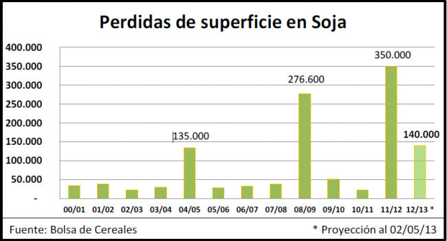 Respecto del área perdida, se estima que un 7 % de la superficie sembrada no sería cosechada porque su rendimiento no cubriría ni siquiera el costo de la cosecha. En números absolutos estimamos que alrededor de 140.000 Ha no serán recolectadas en la región.