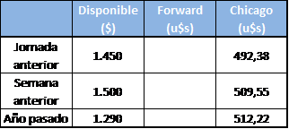 En la rueda del martes no hubo exportadores en la búsqueda del cereal, quedando solamente los consumos del lado de la demanda. Por la descarga inmediata en El Fortín se ofrecían pagar $ 600/ton, aunque ese valor mejoraba hasta $ 640/ton en Clason.