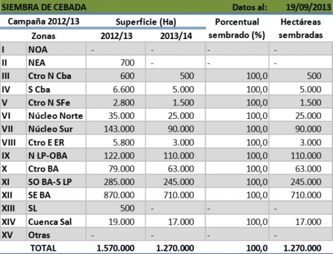 El 20 % restante de las 1.270.000 hectáreas implantadas a nivel nacional, se concentran el norte y oeste de Buenos Aires, La Pampa y Santa Fe, Entre Ríos y Córdoba, donde la evolución del cultivo se encuentra muy ligada a las precipitaciones acumuladas durante los últimos días.