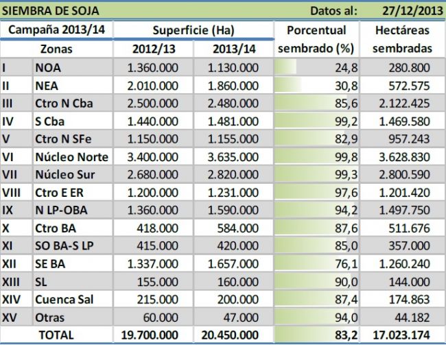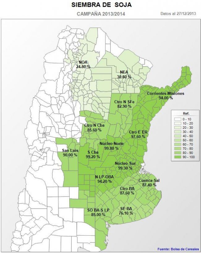 En números absolutos ya se sembraron más de 17 millones de hectáreas, y se da por finalizada la incorporación de lotes de primera sobre los Núcleos Norte y Sur, Centro-Este de Entre Ríos, La Pampa y Buenos Aires, como así también sobre el Sur de Córdoba. Por otra parte, en San Luis aún quedan lotes de primera por sembrar y a la fecha están a la espera de nuevos pulsos hídricos que permitan concretar su incorporación. Similar situación se registra en el Centro-Norte de Santa Fe y en sectores de la región NEA, en donde la siembra se encuentra demorada por falta de humedad en superficie. En cambio, en la región NOA se relevaron importantes avances en la incorporación de lotes durante los últimos días, esto gracias a la reciente recuperación hídrica registrada en extensas áreas de la región durante las semanas previas.