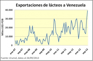Venezuela retomó su lugar como principal importador de lácteos uruguayos durante setiembre. Cifras preliminares al cierre del mes indican que las ventas alcanzaron US$ 39.23 millones frente a los US$ 28,20 millones de agosto.